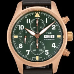 Aviation inspired watches have always been mystical. They are a representation of bravery, adventure, and technical accuracy. One particular watch that strikes with an overwhelmingly bold look and solid engineering is the Pilot Chrono Spitfire IW377726 SS ZF Best Edition with a green dial and a brown leather strap. The timepiece provided by Luxury Watch Lane represents the eternal popularity of pilot chronographs, but offers a certain twist to it in its distinct color scheme and elegant detailing.