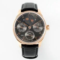 The Portuguese IW503404 Real PR RG APSF 1:1 Best Edition Gray Dial on Black Leather Strap is a grandiose entry into the field of homage complication. It tries to incorporate aesthetical richness, multifunction calendar mechanics, and visual complexity into one package. It is intriguing with the gray dial, rose gold case colors, and complete complication arrangement to the design and mechanical narrative lovers.