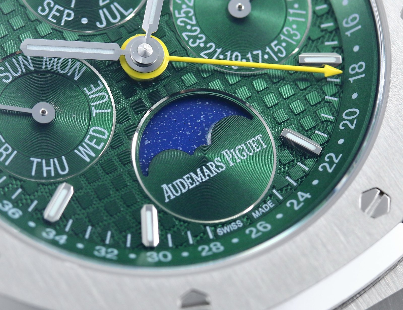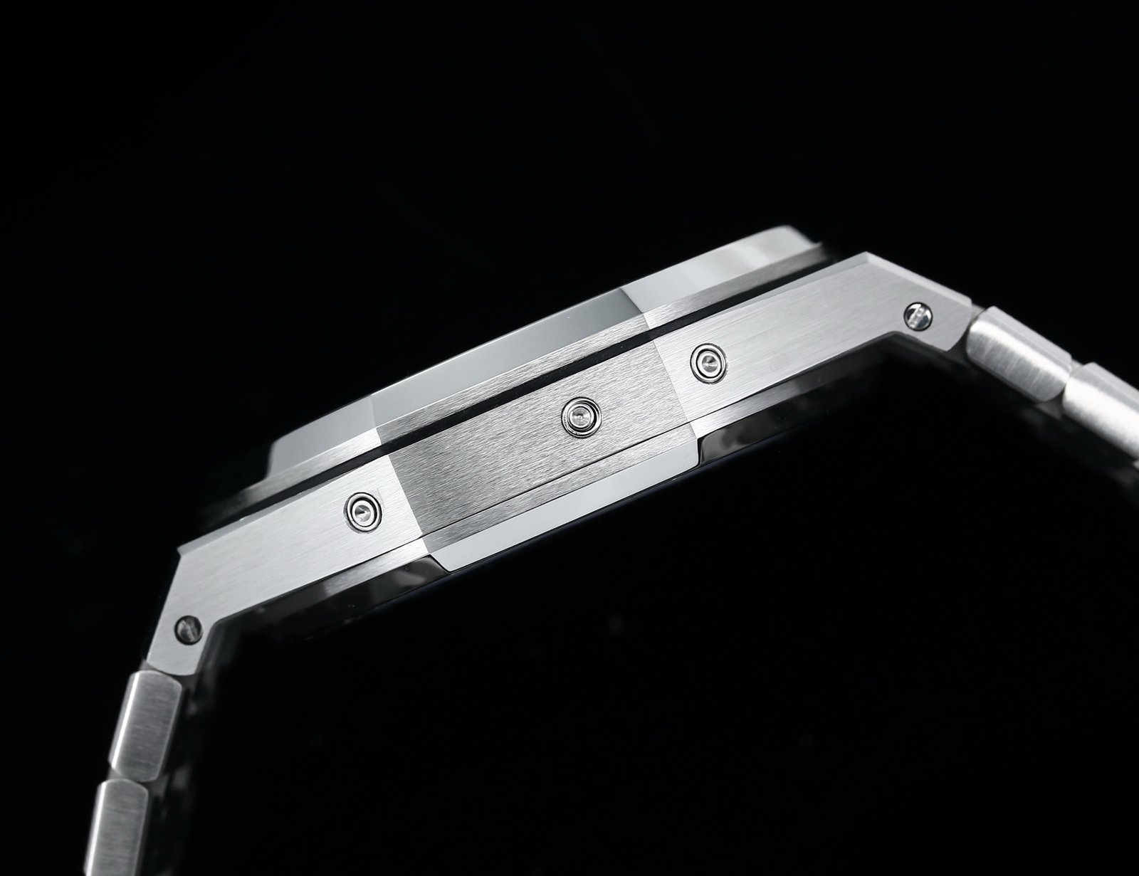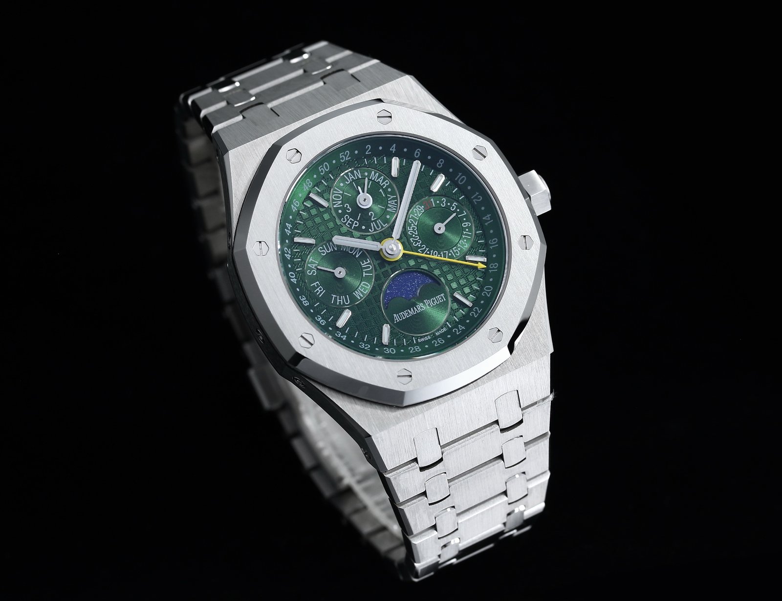 Movement Base Movement: Asian 23J Automatic Movement at 21600vph Decoration: Platinum plated movement plate and rotor which is made according to the genuine movement, the best looking AP Calibre Movement