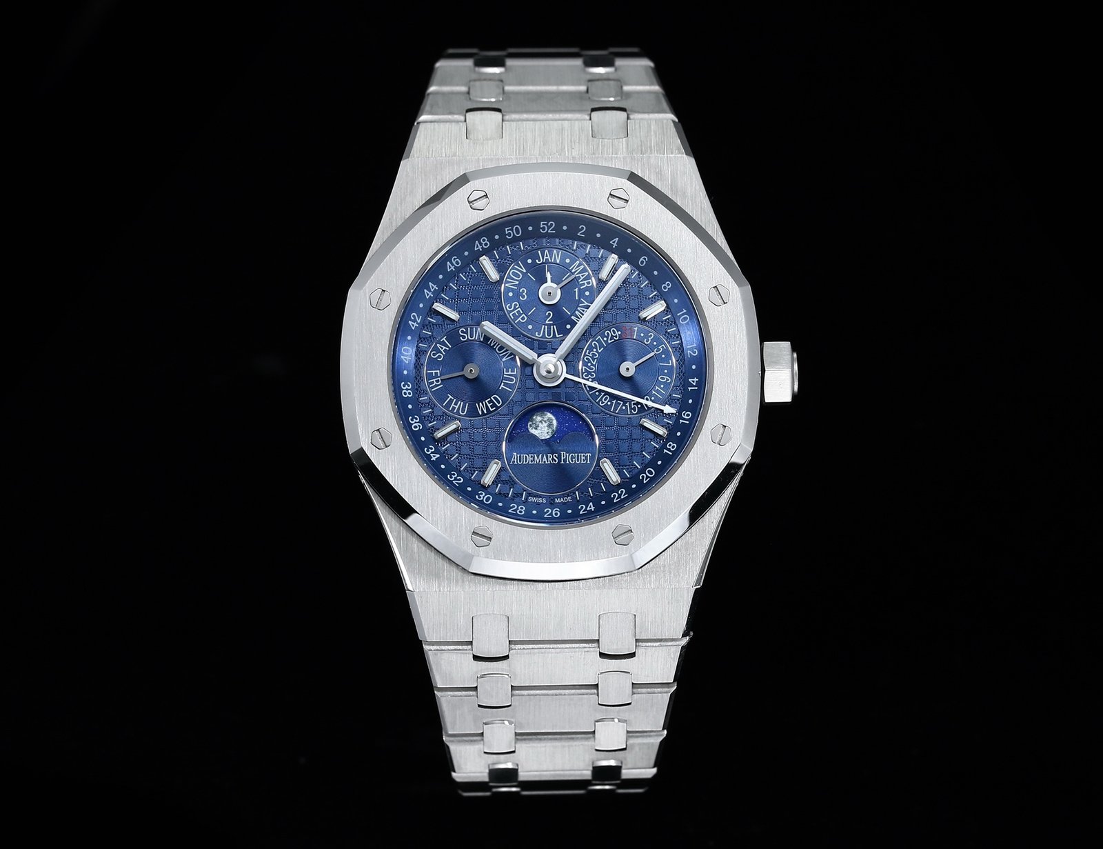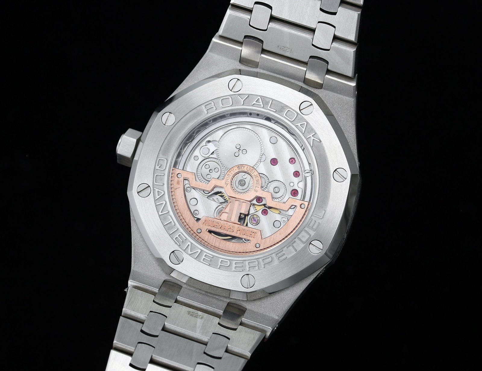 Movement Base Movement: Asian 23J Automatic Movement at 21600vph Decoration: Platinum plated movement plate and rotor which is made according to the genuine movement, the best looking AP Calibre Movement
