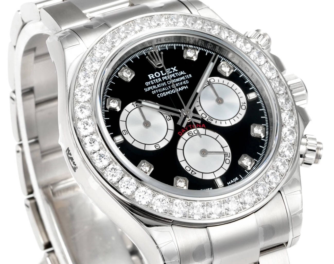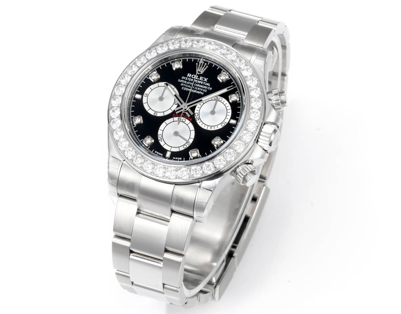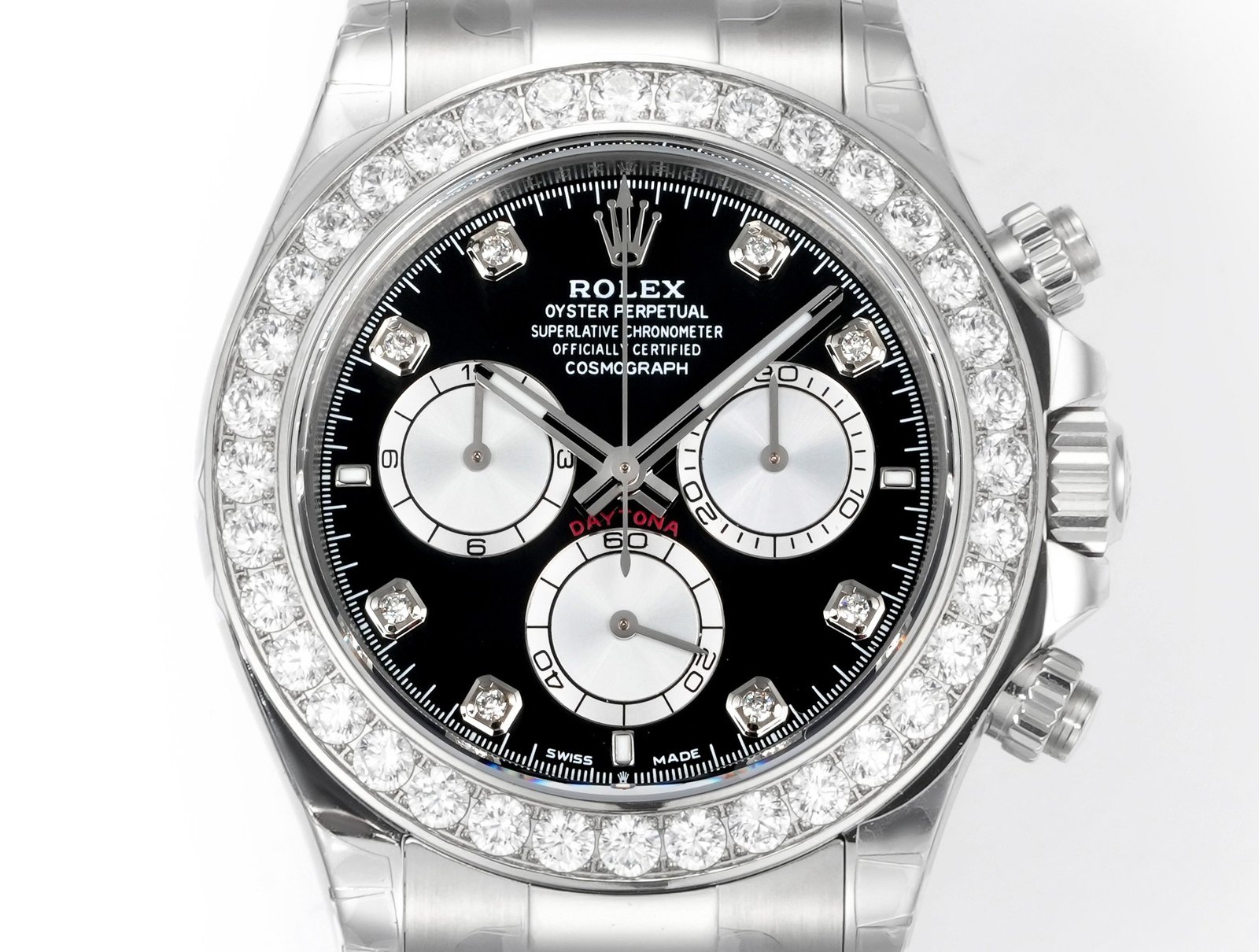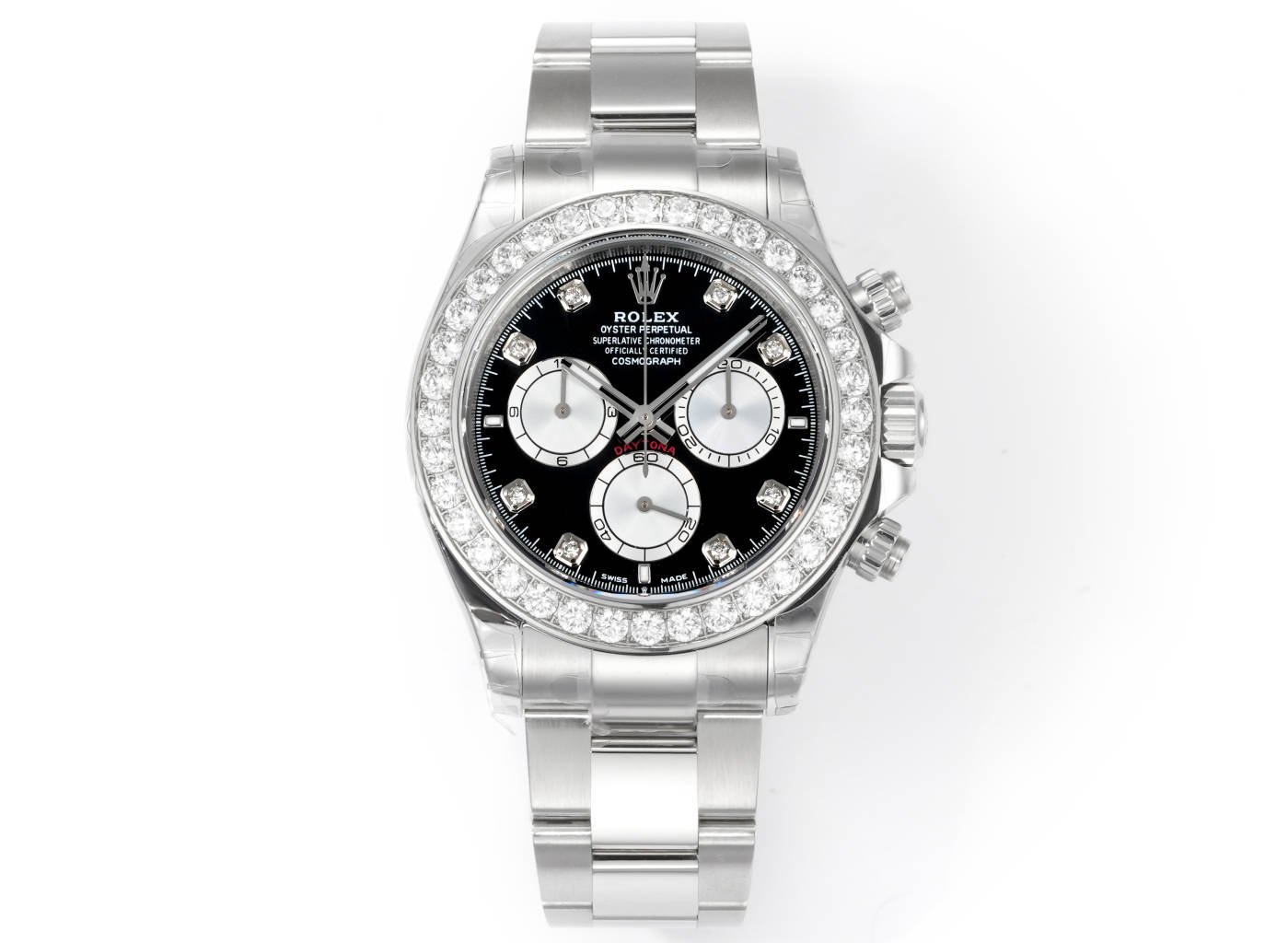Daytona 116598 C1F 1:1 Best Replica Diamond-set Black Dial 904L Stainless Steel Bracelet Movement 4131