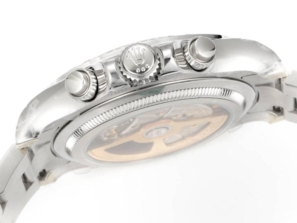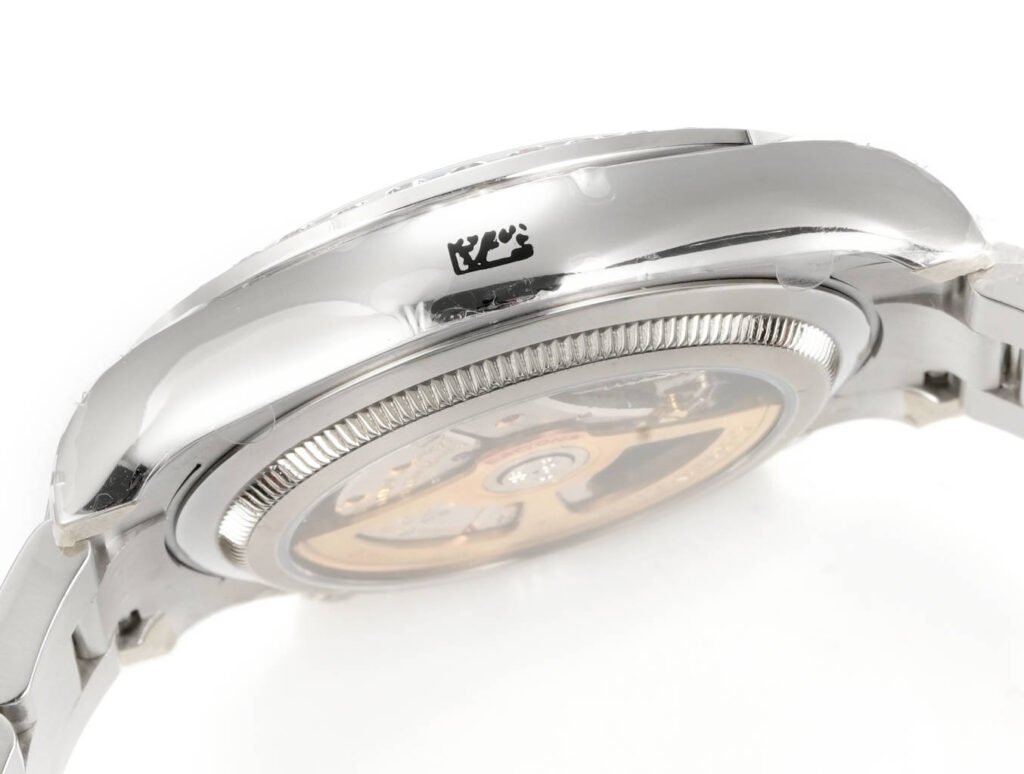 Crystal: Scratch-resistant sapphire crystal, with a semi-recessed crown logo engraved at 6 o’clock (identical to the original, a revolutionary breakthrough in Rolex replica watches)