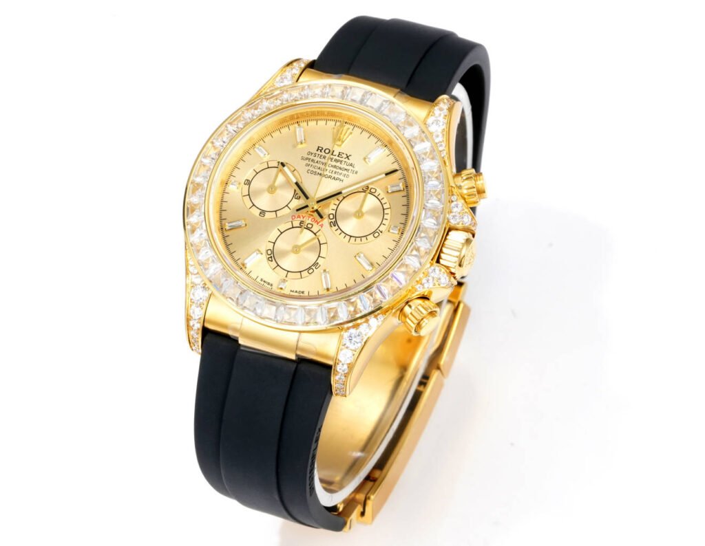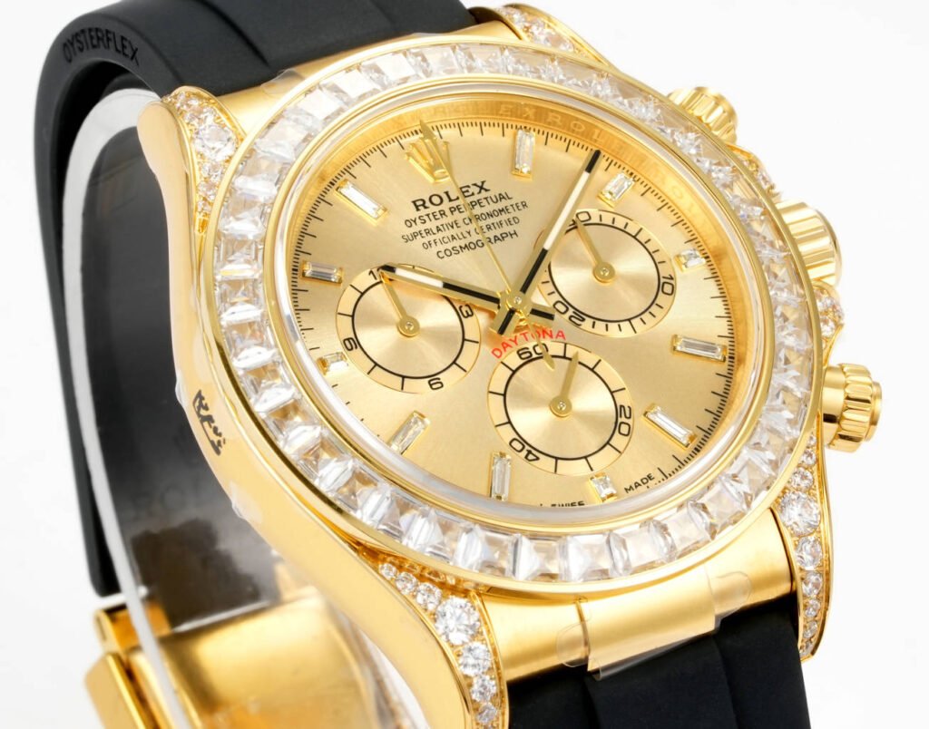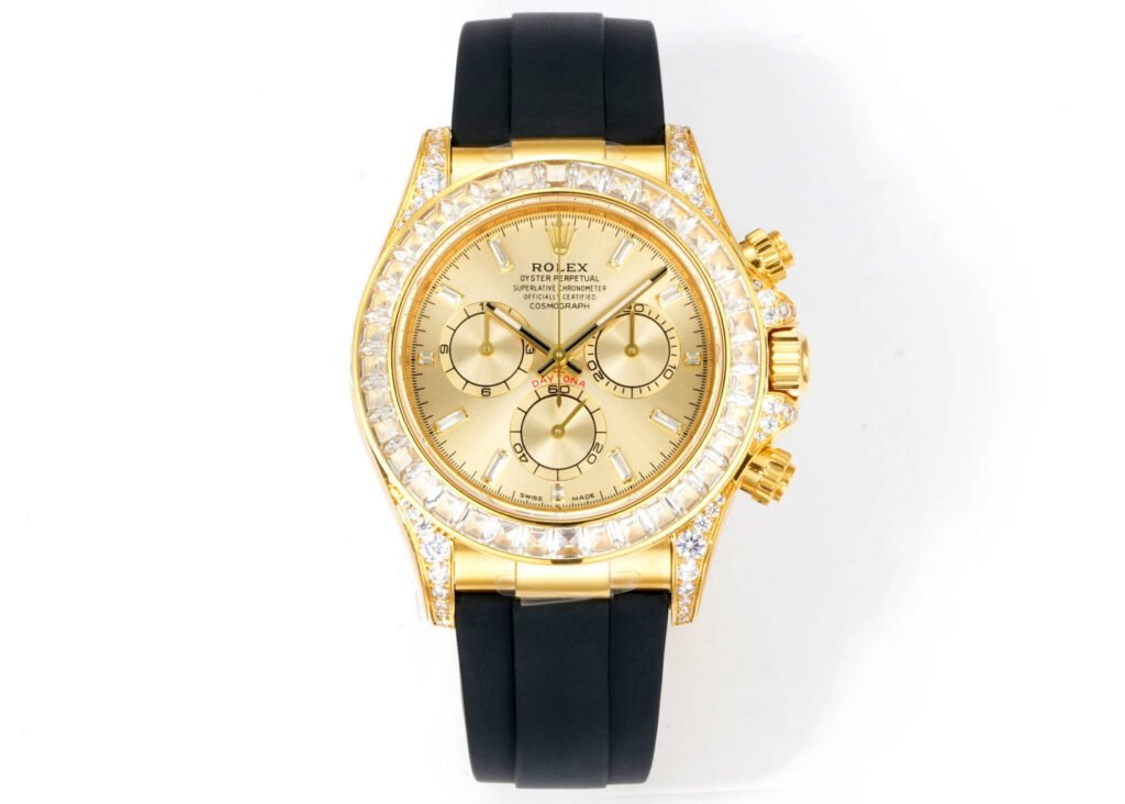 Daytona 116598 C1F 1:1 Best Version Diamond-set Gold Dial Black Rubber Strap 4131