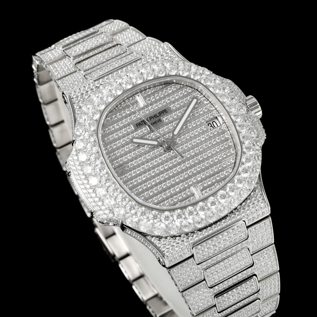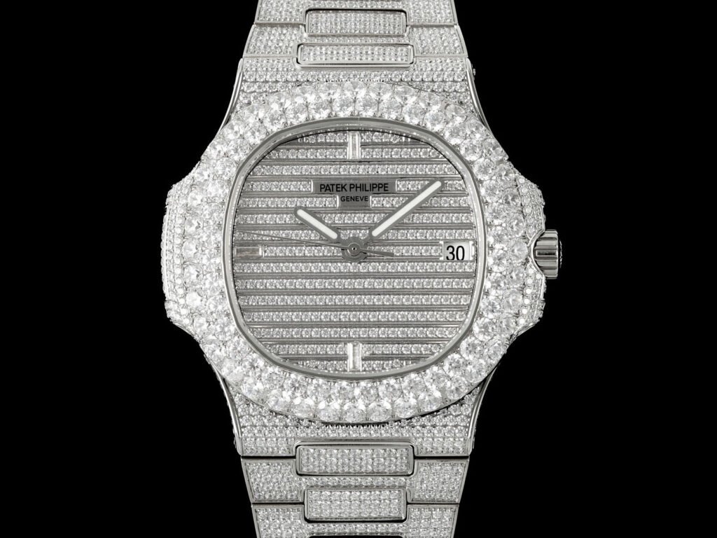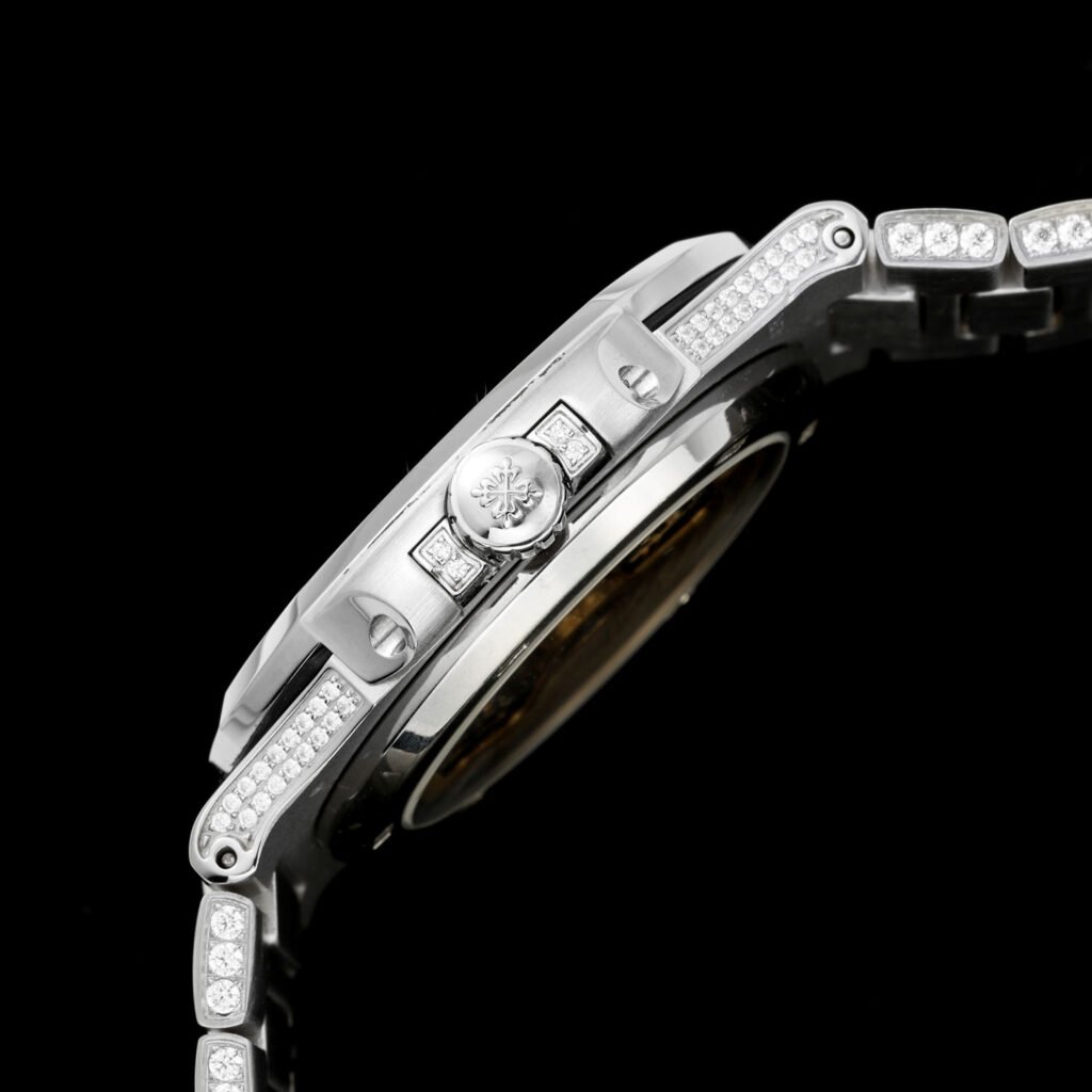 【PATEK PHILIPPE】The latest large diamond-set bezel from the PP Patek Philippe Nautilus 5711 white gold Nautilus series. A newly upgraded version with a double-row diamond bezel, perfectly combining the brand’s world-renowned and extraordinary jewelry-inspired diamond set. This luxurious Patek Philippe watch features a unique and captivating design, showcasing the pinnacle of craftsmanship and symbolizing the status of successful individuals.