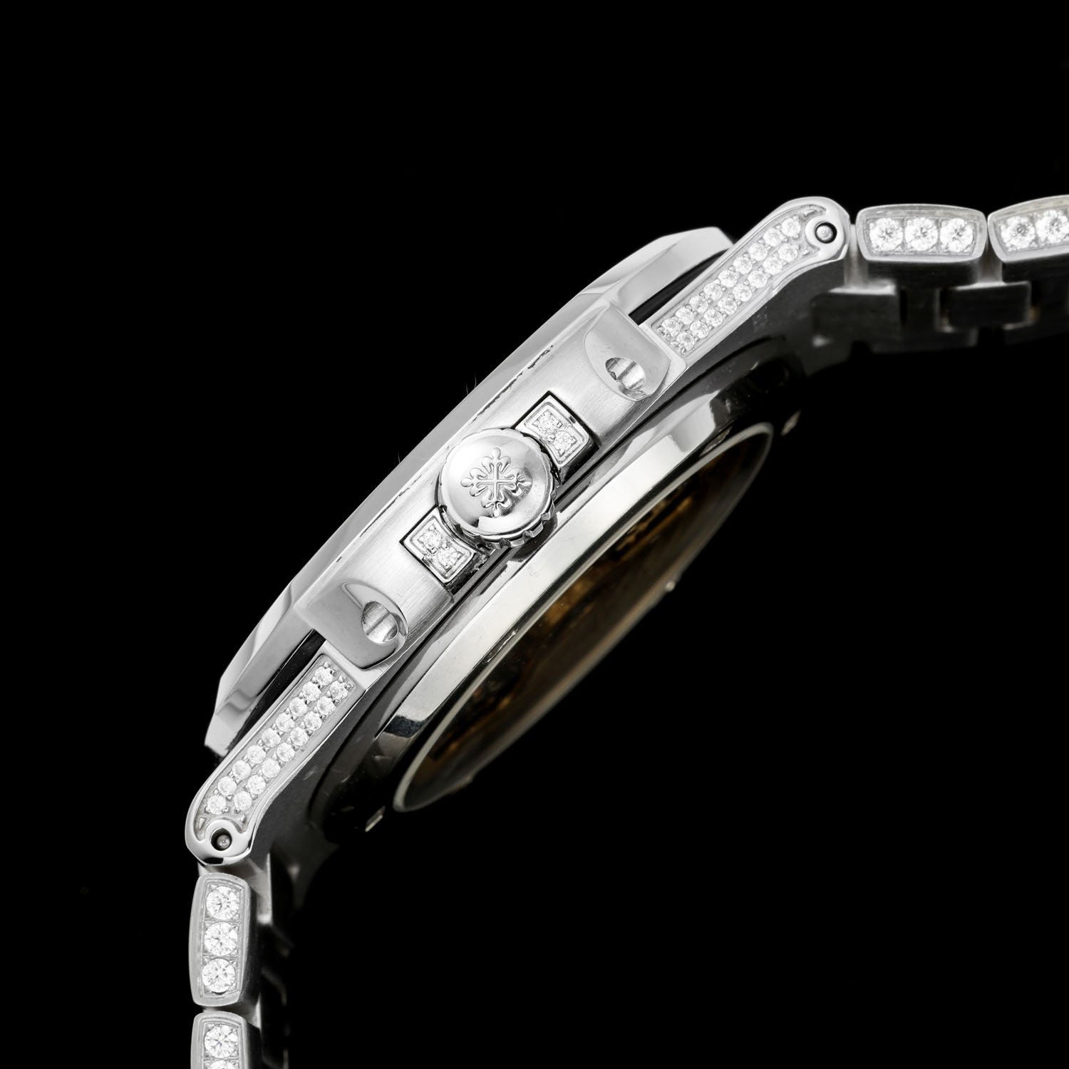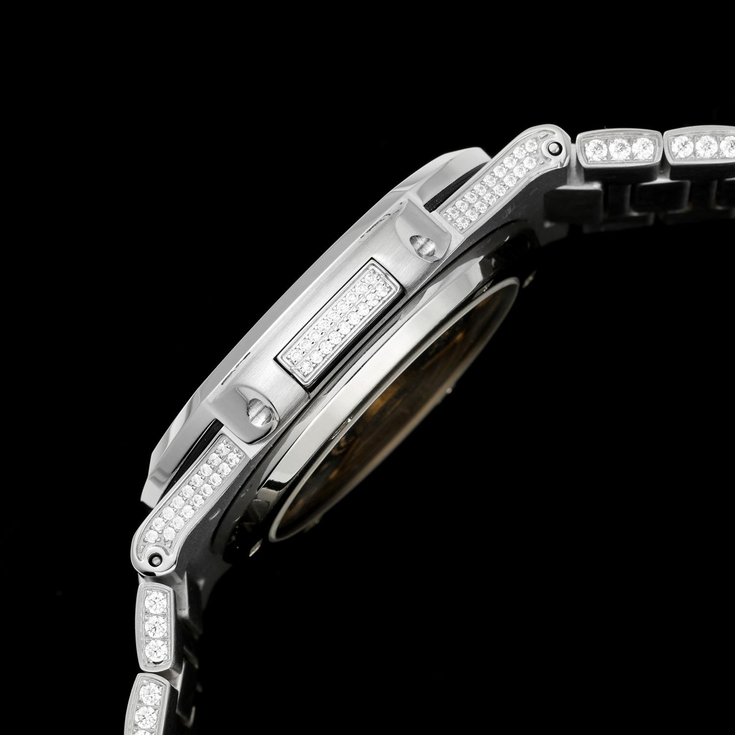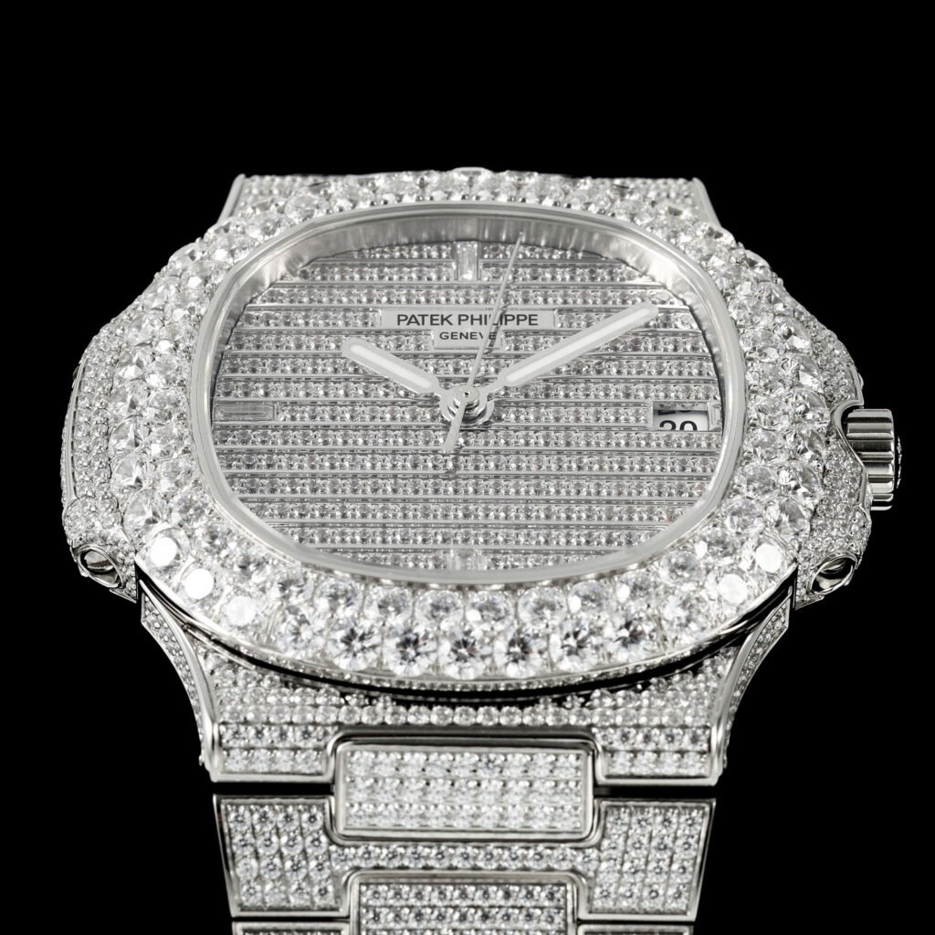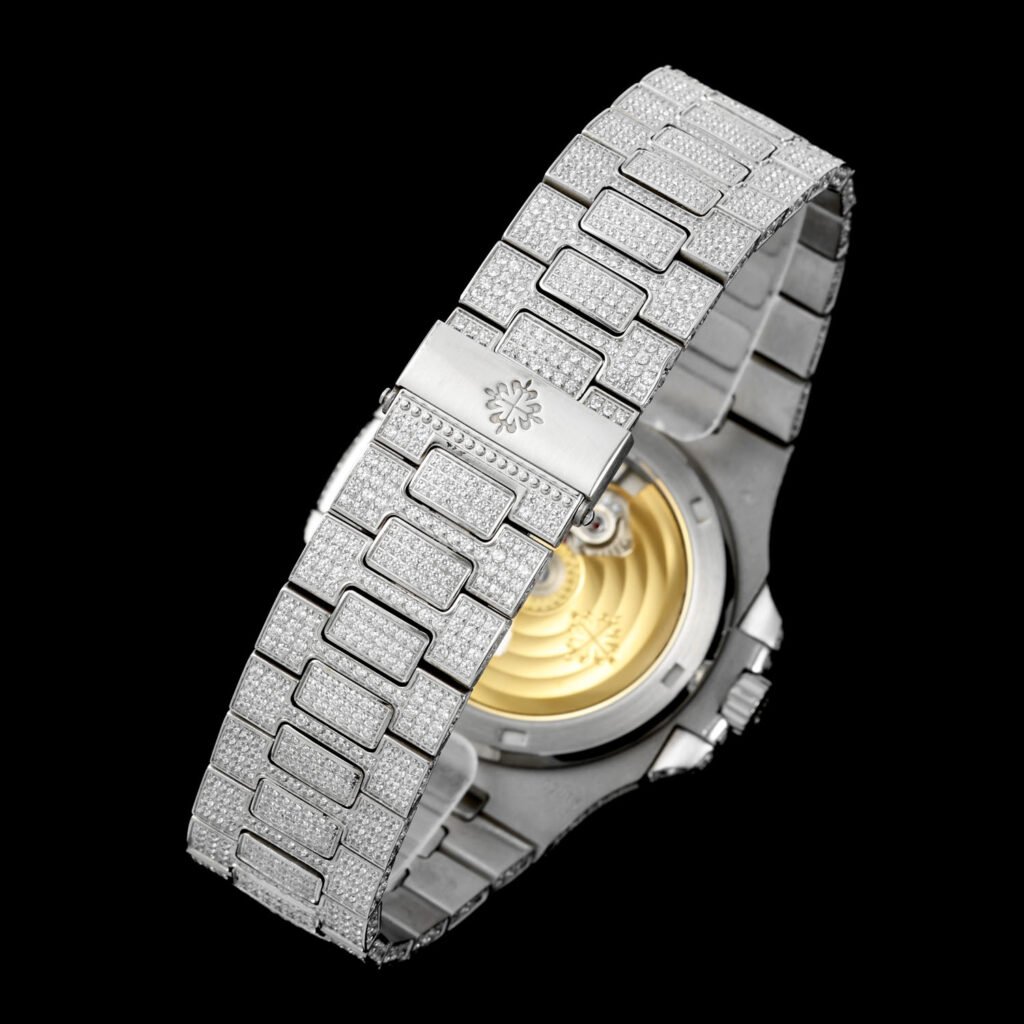5⃣️ Bracelet: Top-tier craftsmanship in setting, adding dazzling brilliance to the watch. This technique requires setting and securing diamonds of varying sizes, concealing as much of the precious metal traces as possible between each diamond.