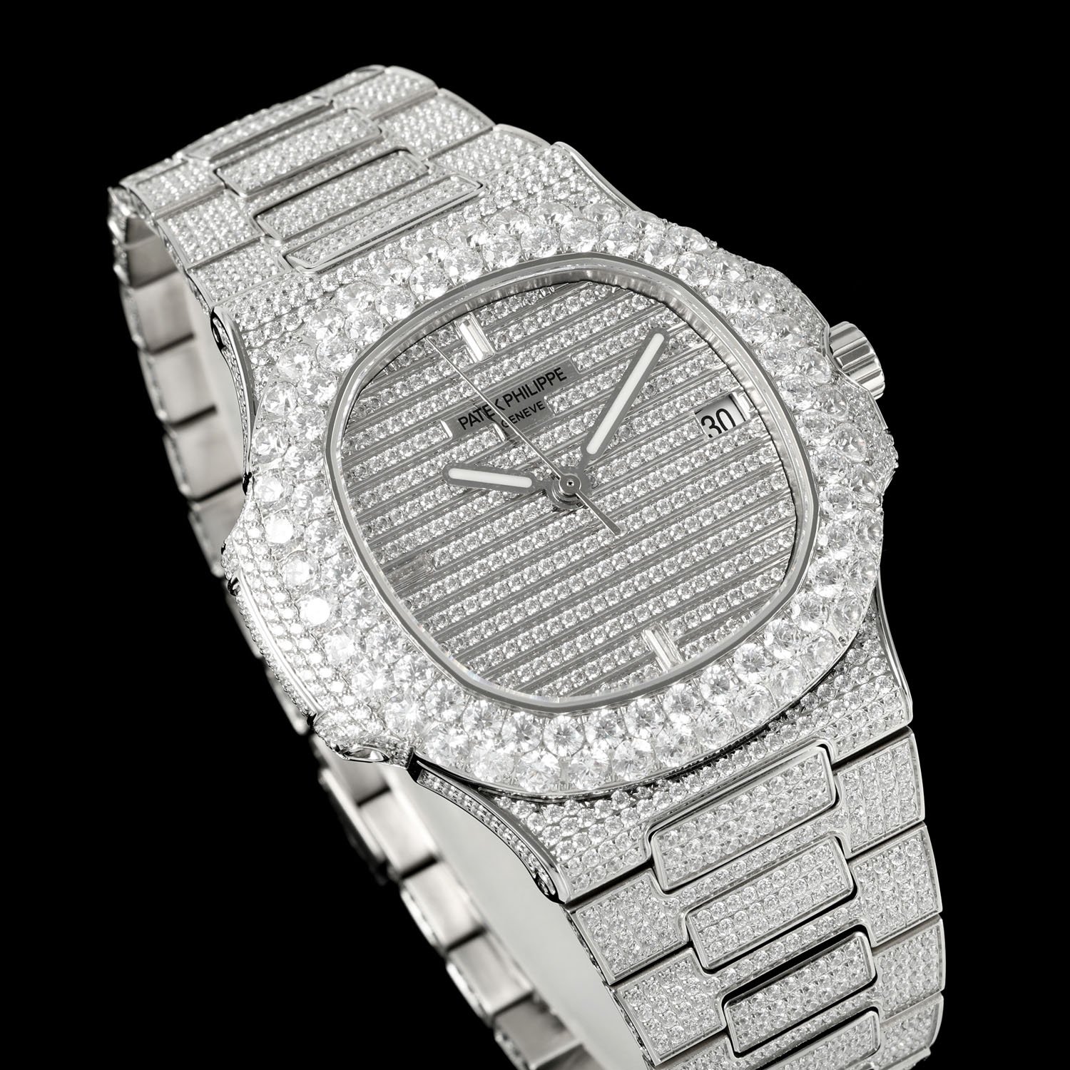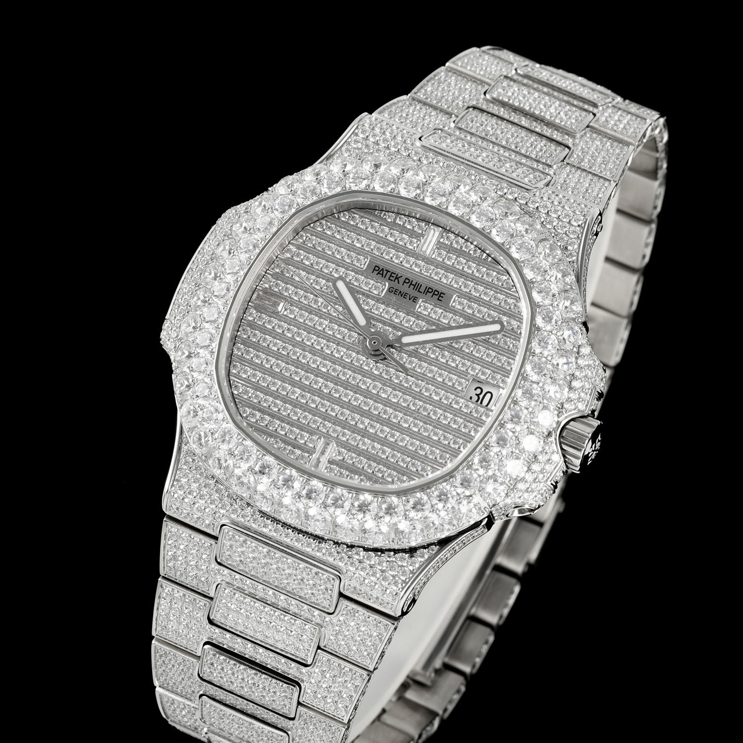 2⃣️Dial: Pavé-set with diamonds, 18k white gold with Swarovski crystals