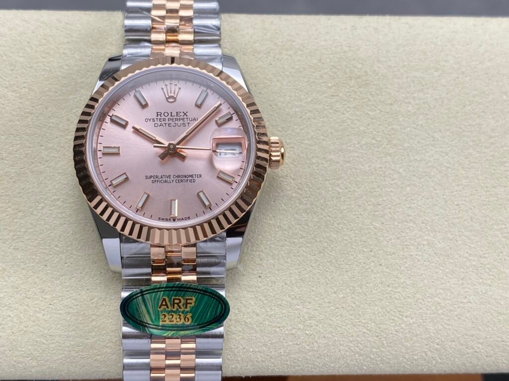 Bracelet: 18K rose gold plated, two-tone solid 904L stainless steel five-link bracelet with a new Rolesor folding clasp