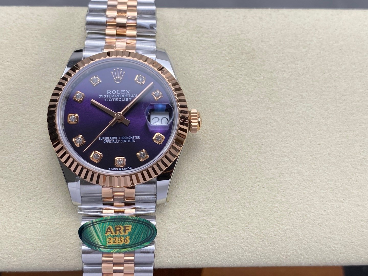 Dial Color: Purple diamond dial, diamond hour markers