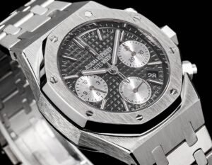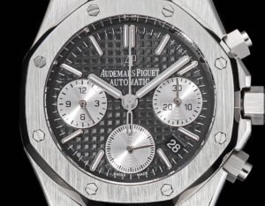 Dial Gray textured dial with silver sub dials